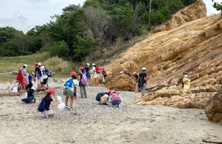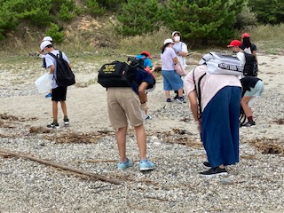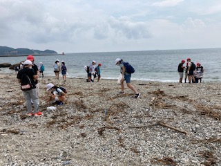 浜辺に行き、石を探しました。良い石がないか、熱心に探していました。探した石(ストーン)にペンで模様を描いたり、色付をしたりします。