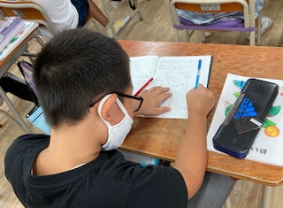 4年生が算数「わり算の筆算」を学習しています。今日は商の見当のつけ方を考えました。商はどの位にたつのか、商はいくらかを見当つけることは、わり算の計算では大切なポイントです。家庭学習でも練習をして、定着してほしいです。
