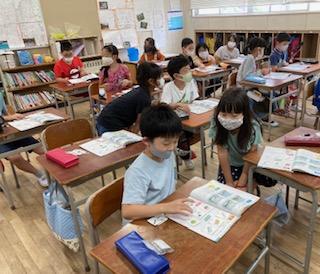 4年生が外国語活動「Do you have a pen? おすすめの文房具セットを作ろう」を学習しました。文房具セットを作って友だちに英語で伝えあいました。