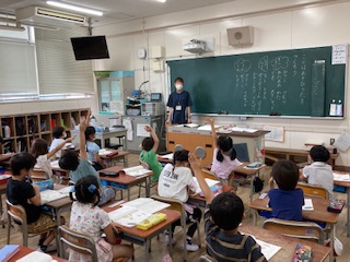 1年生が国語科「ことばあそびうたをつくろう」を学習しています。色々な物の音や様子を思い浮かべてみました。楽しく学習できました。