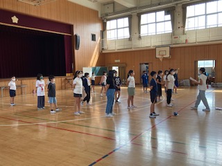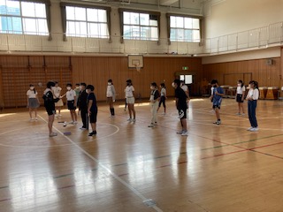 昼休みには、運動会の赤白応援団が講堂で練習しています。応援団長を中心に自分たちで考えて、応援練習をしています。
