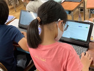 5年生が道徳「のりづけされた詩」を学習しました。各自の意見をタブレット端末に書き入れ、意見交換をしました。