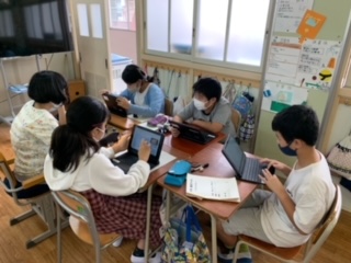 次に、修学旅行で行く伊勢の町についてタブレットで調べ、伊勢の町を参考に、大江の町が賑わうためには、どうしたら良いのかを考えました。