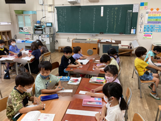 1年生が国語科「ことばのあそびうた」を学習しています。今日はいろいろなことばあそびうたを作りました。各班で、楽器、生き物、自然などのテーマを決めて作りました。