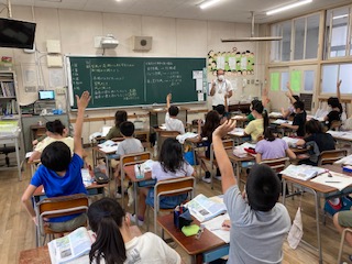 4年生が社会科「台風や高潮から身を守るための工夫を調べよう」を学習しました。干潮や満潮の意味を知り、過去の台風に対しての大阪府や大阪市の取り組みを学びました。