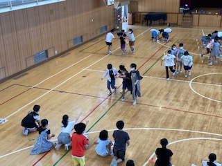 6年生が学年でレクレーションをしました。自然体験教室で行う予定のレクレーションを係の児童が進行して行いました。楽しく盛り上がりました。学年の団結が深まりました。