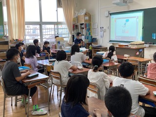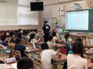 火曜日はモジュール英語で始まります。低学年から英語に親しむことで、3・4年外国語活動、5・6年外国語科の授業において相乗効果が期待されます。