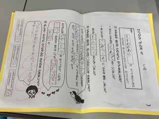 1年生が国語科「サラダでげんき」を学習しています。この単元ではノートを使わずに、毎時間ワークシートを使って授業を進めています。