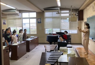 6年生が音楽で合唱をしています。感染症対策を講じてもなあ感染のリスクの高い教育活動についても、感染症対策を行って上で実施できることになりました。マスクを着用し、短時間で歌唱に関する学習活動を行いました。