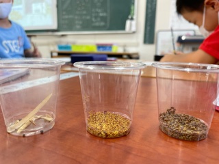 一年生が生活科で、校庭のいろいろな場所に草花の種をまきました。菜の花、シロツメクサ、れんげ草です。とても小さな種を観察してからまきました。春、花いっぱいの学校になるのが楽しみです。