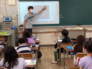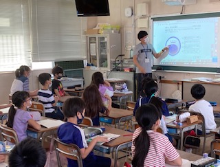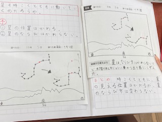 4年生が理科「月や星の動き」を学習しています。星の並び方や位置、動きは、映像を使って学習しました。