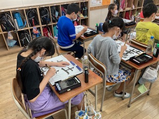 4年生が書写の学習で「土地」を書きました。筆を立てて、ため、はらいに気をつけて書きました。とても集中して書くことができました。