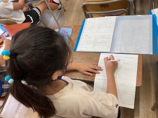 3年生が、総合的な学習「大江ガイドブック」を作ろうに取り組んでいます。大江地域にある歴史的な建造物や天王寺七坂を探検・見学、インタビューをしました。これまでの学習を振り返り、ルーブリックをもとに自己評価をしました。