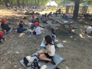 楽しみにしていたお弁当の時間です。班で仲良く食べています!おやつももちろん食べました^_^