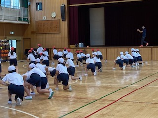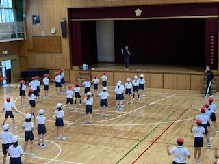 5年生が運動会団体演技の練習を始めました。6年の先生からダンスの指導をしてもらいました。リズムよく楽しく踊れることを目標にがんばっています。