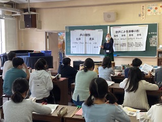 5年生が歌声による演奏の形や声の種類を学習しました。合唱ができる状況になりましたので、感染対策をして実施しています。