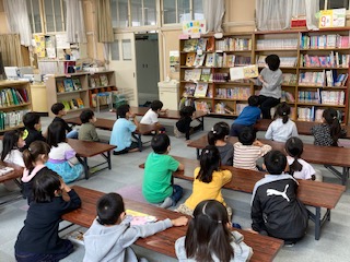 1年生が図書の時間に、学校図書館補助員さんから絵本の読み聞かせをしてもらいました。子どもたちは、お話の世界に入り、楽しんでいました。読書の秋です。色々な本を読んで、読書の楽しさを味わってほしいです。