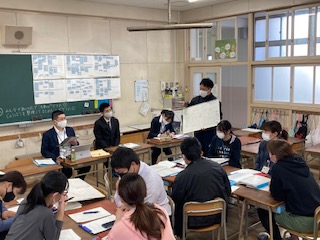 3年の研究授業後、授業研究会を行いました。教育センターから講師先生に来ていただき、授業の振り返りをしました。また、本校の研究と学習指導要領の方向性について、講師先生から指導助言をいただきました。明日からの授業に活かしてまいります。