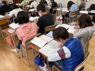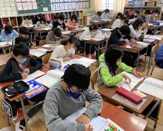 5年生が算数「分数のたし算とひき算」でも、教科書のまとめ問題と算数ワークをしました。とても集中して取り組みました。