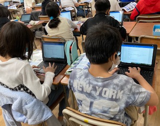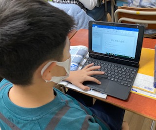 5年生が理科「雲と天気の変化」を学習しています。ノートを使わずに、タブレット端末のWardをノートとして、学習したことを入力しています。使えば使うほど、タイピングが早くなっています。