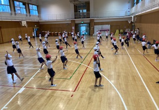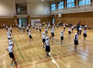 2年生が運動会の団体演技の練習をしました。笑顔が弾けるダンスです。