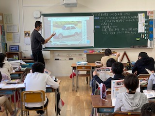 5年生が社会科「自動車をつくる工業」を学習しています。自動車工場へ見学が行けないので、デジタル教科書の映像を見ました。11月にはリモートで工場見学をします。