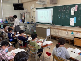 2年生が国語で主語と述語の学習をしました。主語は「何が、何は」であり、述語は「どうする、どんなだ、何だ」ということを学習しました。文章を読み、主語と述語を見つけました。