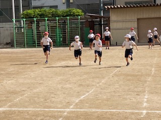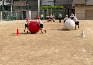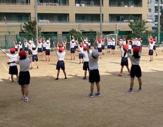 2年生が運動会の練習をしています。かけっこ、大玉ころがし、団体演技を練習しました。本校の運動場は狭いので、運動会は天王寺中学校をお借りして行います。「練習で走った距離より倍の距離を走るよ」と伝えると、驚いていました。