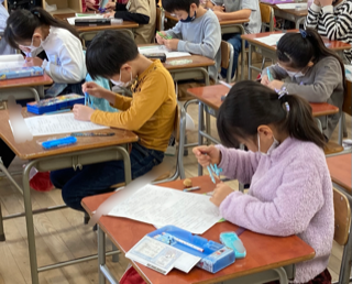 3年生が算数「円と球」の評価テストをしました。コンパスを使って問題を解きました。