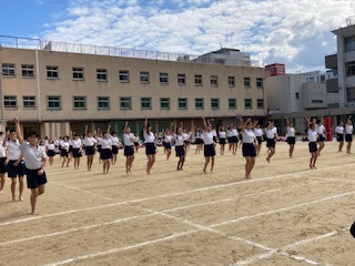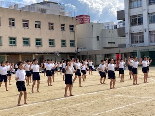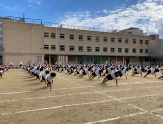 5・6年生の団体演技は、徒手体操とダンスを組み合わせた演技をしました。決してあきらめない気持ちが表れた演技でした。さすが高学年の演技でした。