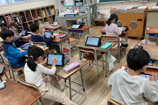 今日は一日中雨のようです。子どもたちは、雨の日の過ごし方を考え行動しています。読書、ゲーム、デジタルドリルなどをして、休み時間は過ごしています。