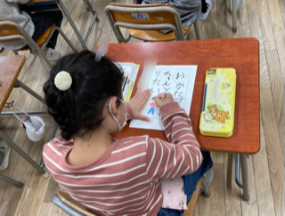1年生が来年の目標や希望のカルタを作りました。今年もあと約6週間で終わりです。もう来年のカルタを書く時期に来たと思うと、1年が早いです。1年生は4月に入学して小学校生活をスタートしましたが、日々成長しています。うれしいです。