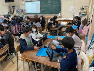 3年生が、ガイドブック「大江のまち」を作成しています。歴史のある名所を2年生に紹介します。できあがりが楽しみです。