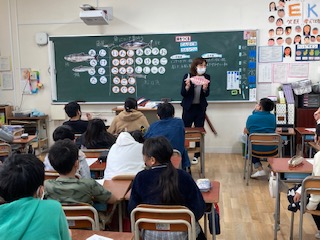5年生が区内の栄養教諭の方から、栄養指導をしてもらいました。「魚の名前や働きについて知ろう」というテーマで、魚の種類や魚の栄養について教えてもらいました。今日学んだことを忘れずに、しっかりと魚を食べてほしいですね。