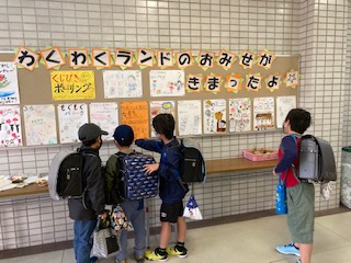 12月3日(金)に「ふれあいわくわくランド」があります。各学級でゲームなどの楽しい催し物を行い、たてわり班で各学級を回ります。子どもたちがとても楽しみにしている行事です。各学級の催し物の紹介ポスターが玄関に掲示されています。どこへ行こうかと今から考えています。