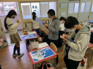 6年生は、図工で版画(浮世絵)や立体作品(将来の自分)、絵画(有名な建物)の作品鑑賞会をしました!友だちの作品のいいところを付箋に書いてわたしました!『版画の彫り方がきれい』『粘土をきれいに伸ばして、しわがなく服をつくれている』などみんな真剣に友だちの作品の良いところを見つけていました。
