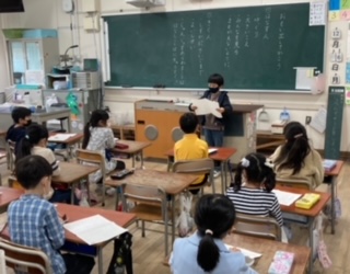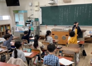 1年生が国語「おもい出してかこう」を学習しました。原稿用紙1枚に夏休みに行った旅行やピアノの発表会のことなど、いろいろな思い出を書き発表しました。発表後は、お友だちから質問を受けて、しっかりと答えていました。