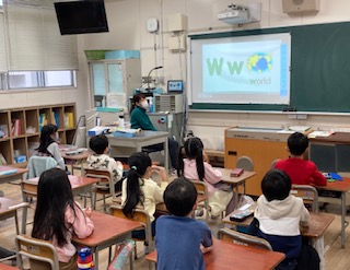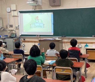 火曜日の朝は、モジュール英語です。10分間という短い時間ですが、少しずつ続けることで子どもたちの話す力、聞く力が高まっています。