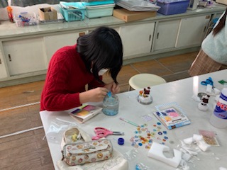 下の写真は、科学実験クラブです。スノードームを作っています。