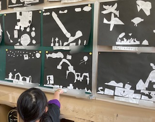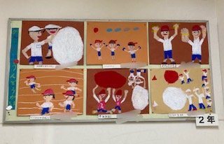 2年生が図画工作で「はさみのアート」をしました。完成した作品は、教室に掲示しました。また、運動会の絵は学年掲示板に掲示しています。個人懇談会の時に、ご覧ください。