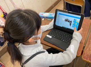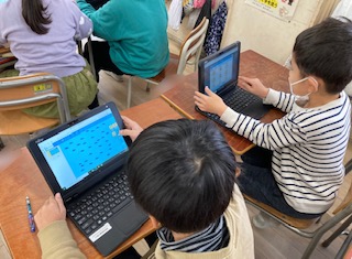 2年生がタブレット端末にある発表ノートを使いました。お互いが作ったものを来週に発表し合います。