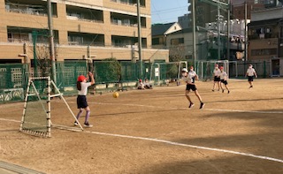 6年生が体育でボール運動として、ハンドボールをしています。子どもたちがルールを考えて楽しく運動しています。女子は男子のシュートを怖がらずにブロックしていました。