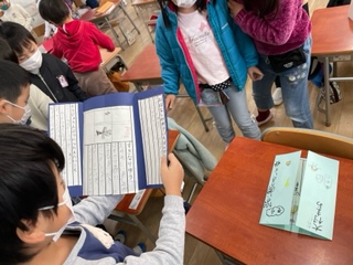 好きなおはなしを、紹介カードに書いて、読み合いました。次に読んでみたい、面白そうな本がたくさん見つかりました。