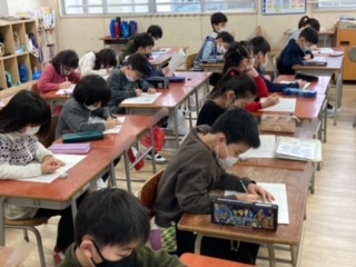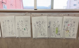 2年生が3学期の目標を作文に書きました。少し努力すればできる目標を具体的に立てていました。あとは、目標の達成をめざして、努力を続けてほしいです。また、廊下にもがんばることを掲示しています。