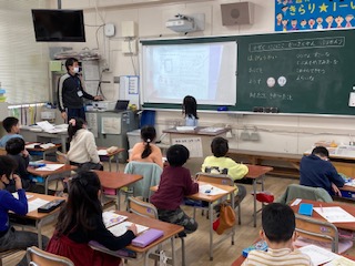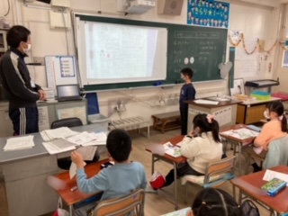 1年生が生活科の学習として、冬休みに「家族にこにこ大作戦」をしました。今日はその振り返りをしました。冬休みにしたお仕事の内容、わかったこと、気がついたこと、名人になれたかなど、発表しました。