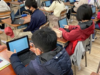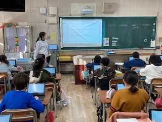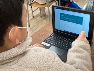 4年生が児童アンケートをしました。今までは紙ベースで行っていたアンケートを、今回からタブレット端末を活用して実施しました。子どもたちは混乱せずに回答していました。