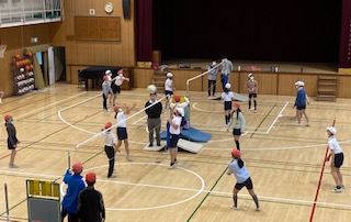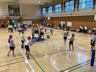 5年生が企画、運営して6年生とのバレーボール大会を行いました。とても白熱したゲームでした。6年生にとって楽しい思い出のひとつになりました。
