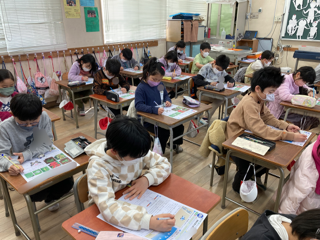 3年生が理科の学年まとめテストをしました。がんばって問題を解いていました。