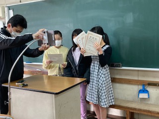 クラフトテリオグランプリの作品募集で、見事にグランプリを受賞した児童への表彰がありました。グランプリ作品は、ネイリストの仕事を表した作品です。おめでとうございます。また、環境美化委員会から清掃をよくがんばっているクラスの発表がありました。教室をはじめ、学校内がきれいです。