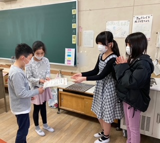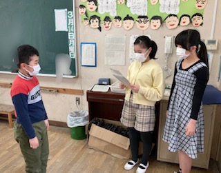 環境美化委員会が清掃をがんばったクラスへ表彰状を届けに行きました。どのクラスも清掃をがんばっています。